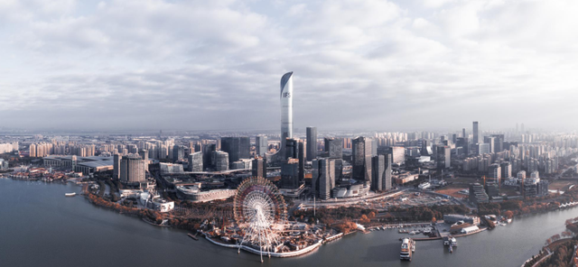 蘇州九龍倉國際金融中心超高層項目位于蘇州工業園區湖東CBD商圈核心區域,西面正對金雞湖,地塊面積為21,280平方米,總建筑面積393,208平方米,項目包含一座92層、高達450米的江蘇第一高樓,以